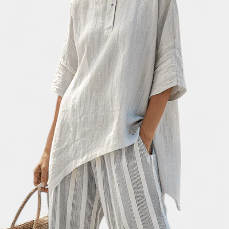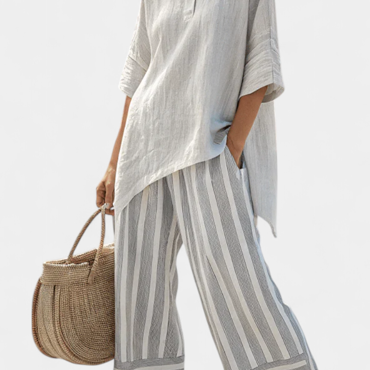 Sada pruhovaných Nancy s oversized tričkem a elegantními šortkami