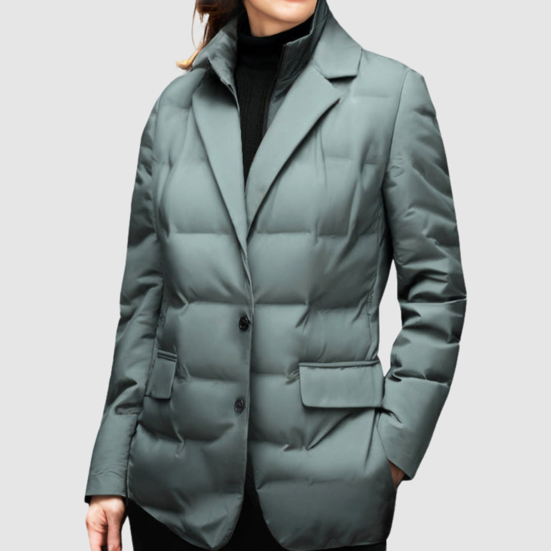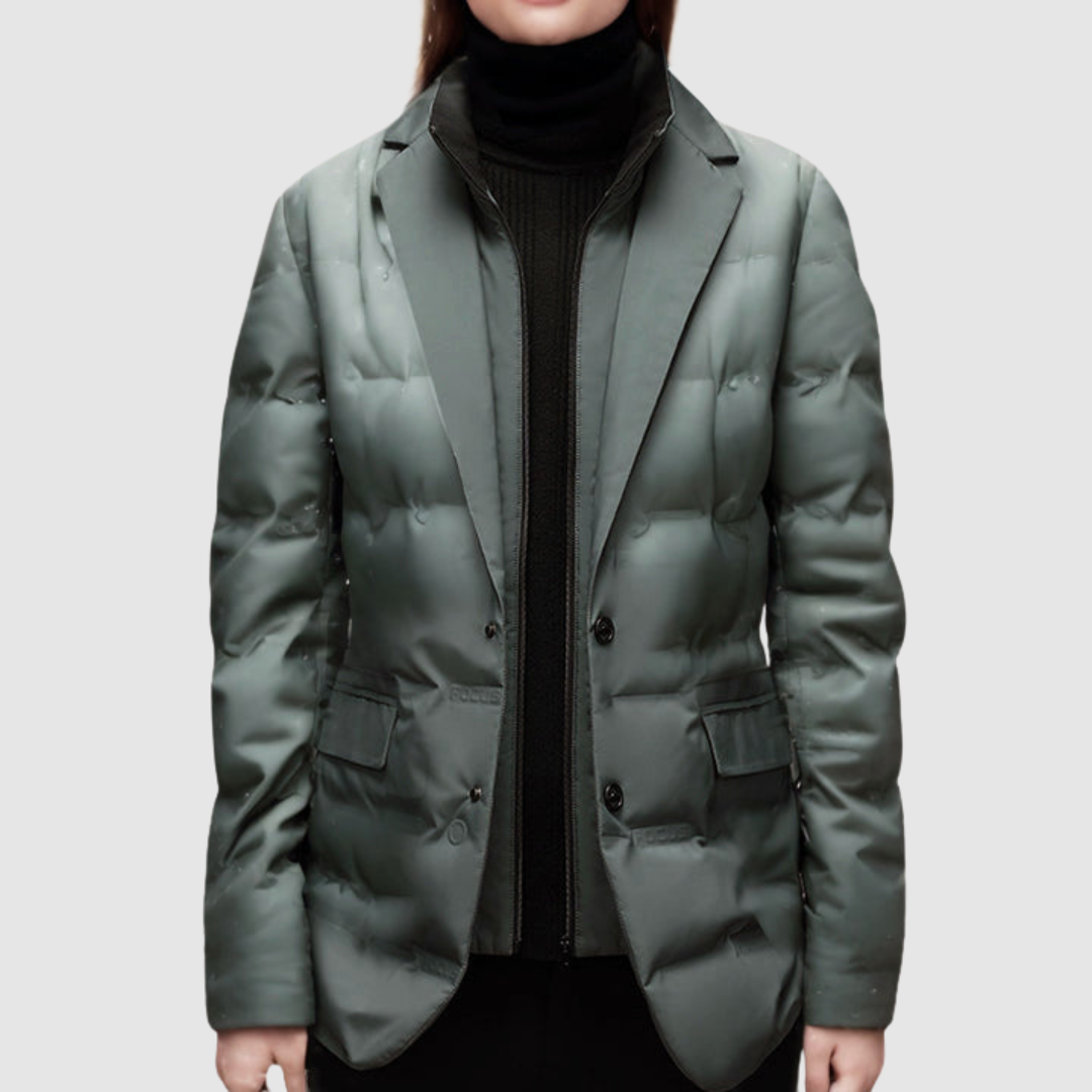 Tento kabát přináší jedinečnou kombinaci klasické elegance a praktického zateplení. Díky střihu připomínajícímu působí sofistikovaně, zatímco prošívaná struktura zajišťuje maximální pohodlí a tepelný komfort. Ideální pro ženy, které chtějí vypadat upraveně i během chladných dní.