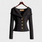 Exkluzivní design – výrazný límec a zlaté knoflíky dodávají elegantní a sofistikovaný vzhled.