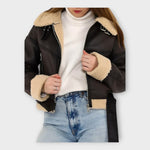 Moderní kožená bunda s podšívkou a páskem