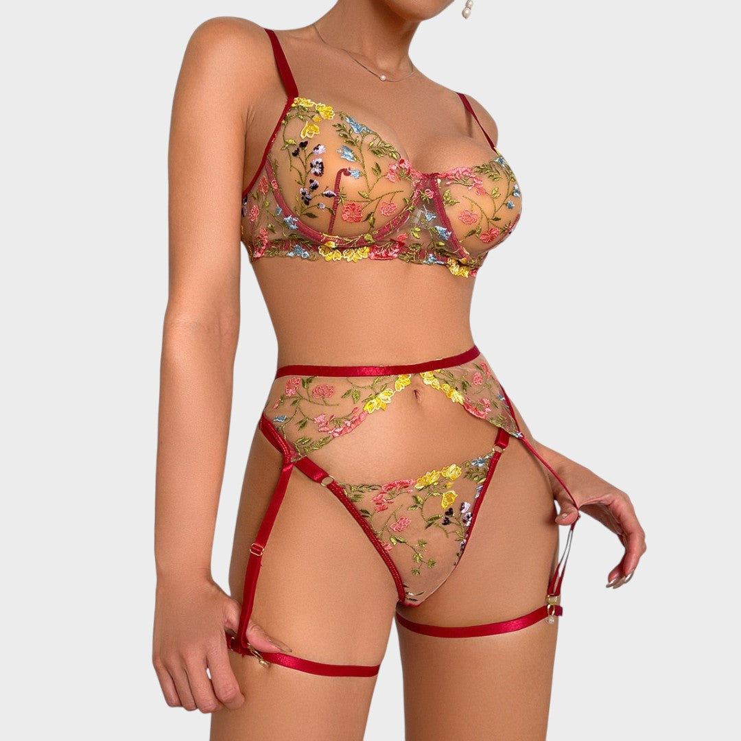 Becky | 3-dílná francouzská květinová souprava spodního prádla