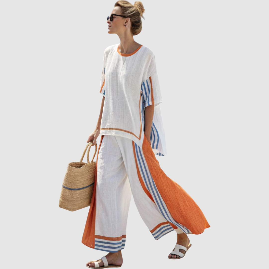 Rozálie - Etnická sada z bambusového lnu s pruhy