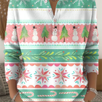 Tento svetr s veselým růžovým a zeleným potiskem stromu přináší radostné vánoční chvíle. Kombinace měkkých barev a subtilních pruhů dodává moderní twist klasickému svátečnímu vzhledu. Vyrobeno z teplé pletené směsi bavlny pro maximální pohodlí.