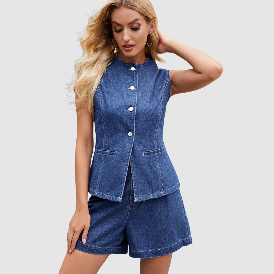 Nela - Elegantní bezrukávová vesta s knoflíky a šortky