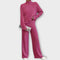 Objevte nadčasovou ležérnost se žebrovanou dvojdílnou soupravou "Amelia". Tento elegantní outfit kombinuje pohodlí a styl a je ideální pro módně uvědomělé ženy, které dbají na decentní detaily a všestranné vzhledy.