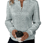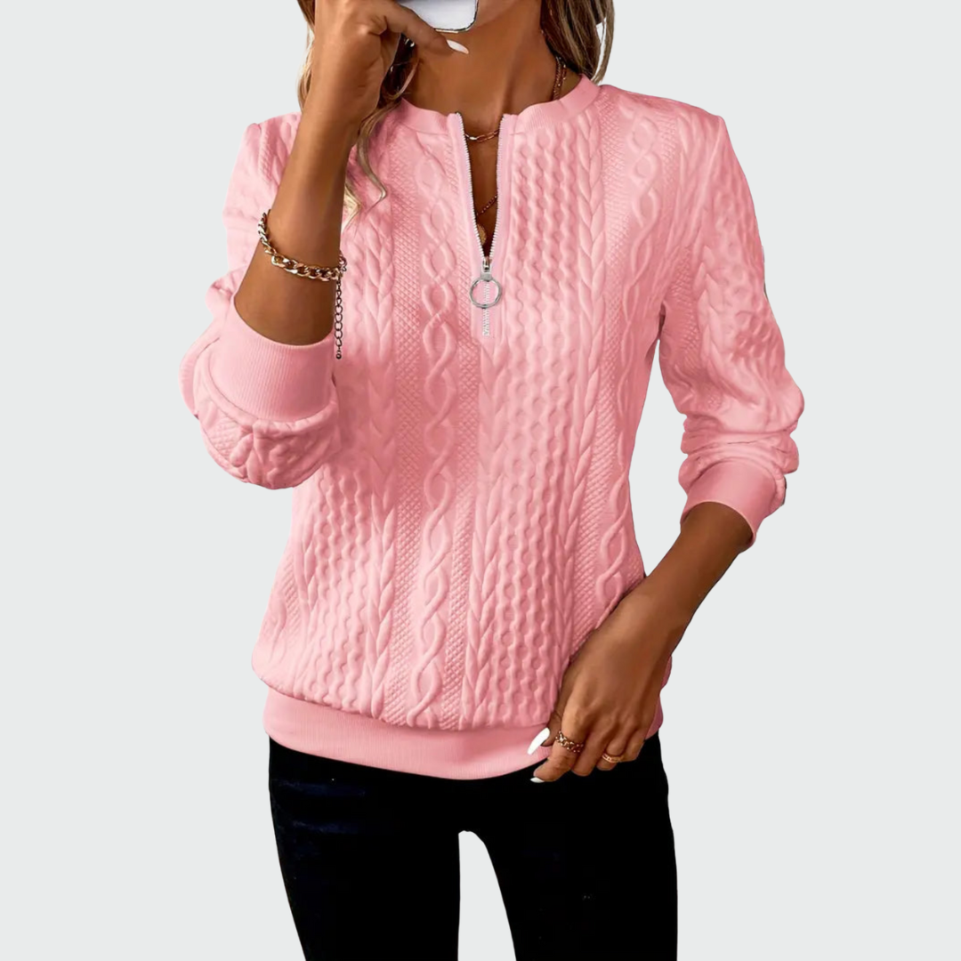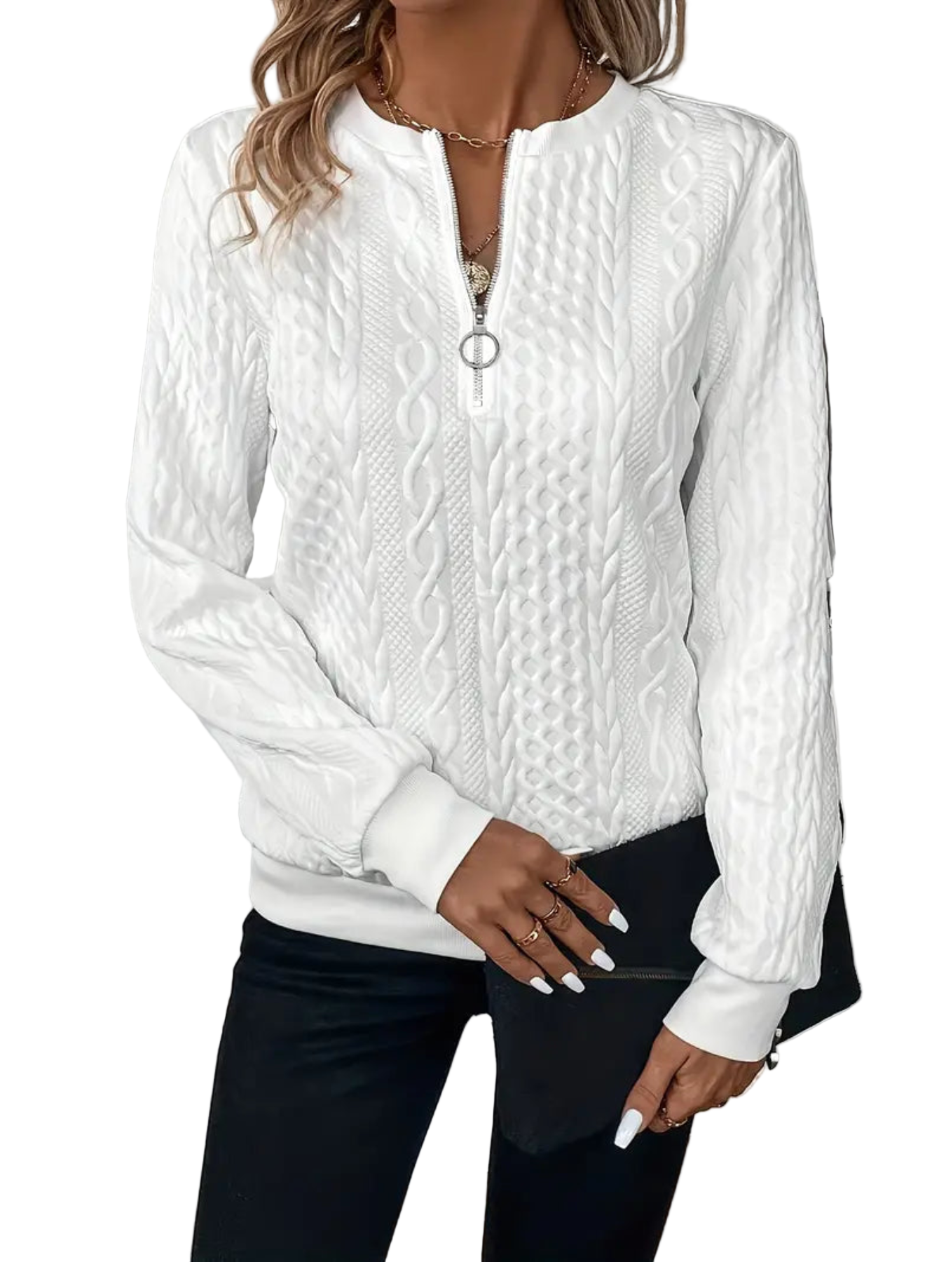 Okouzlující kousek, který spojuje styl a pohodlí. Jeho pletený vzor v jemném odstínu dodává sofistikovaný vzhled, aniž by ztratil na komfortu. Perfektní pro ležérní i elegantnější outfity a zaručeně univerzální volba pro každou příležitost
