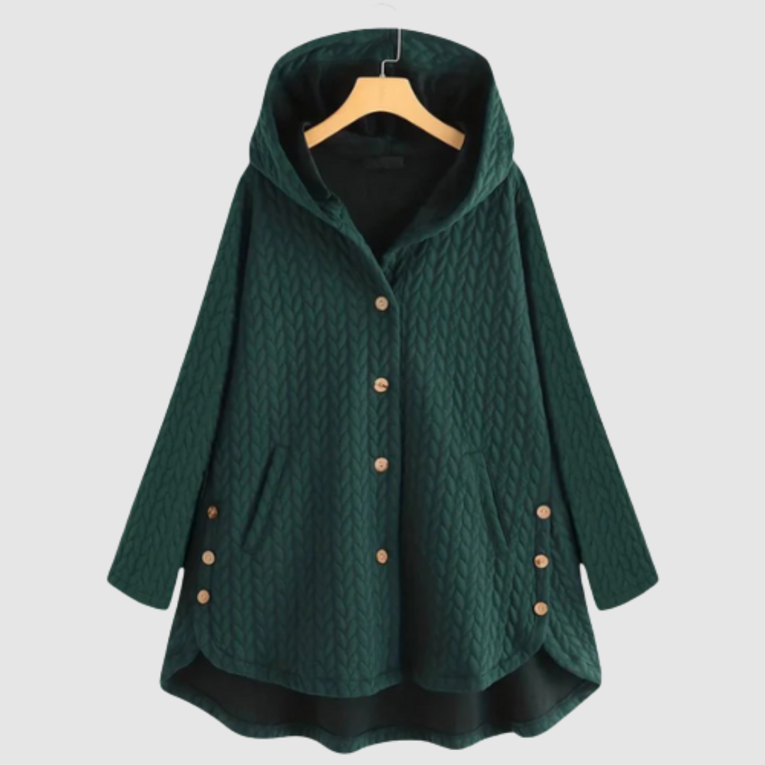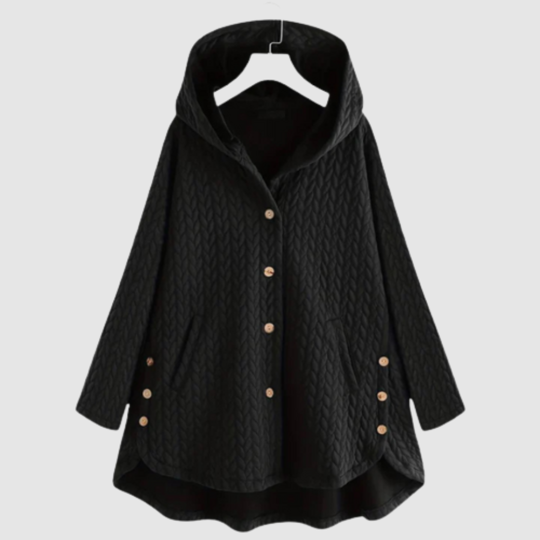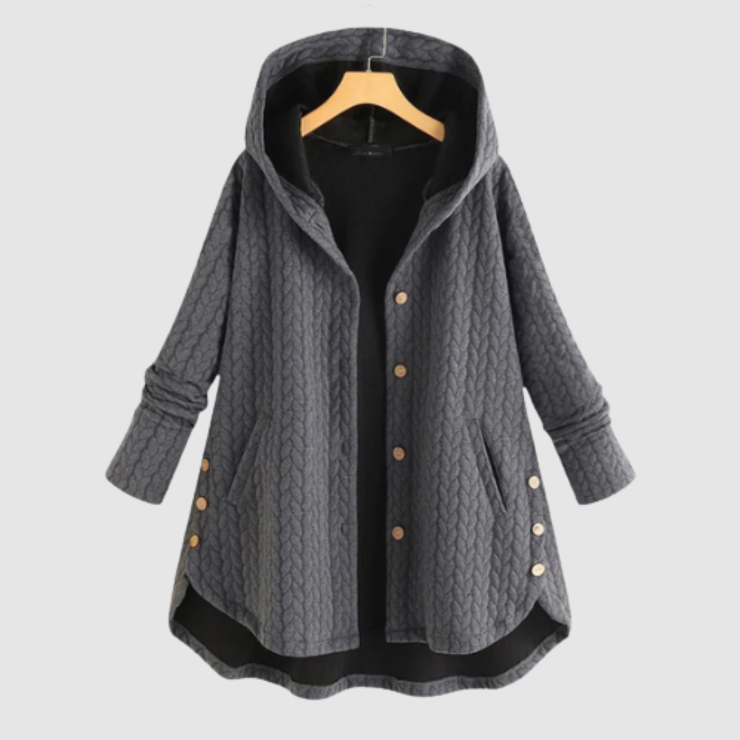 Stylový kabát s kapucí a ozdobnými knoflíky