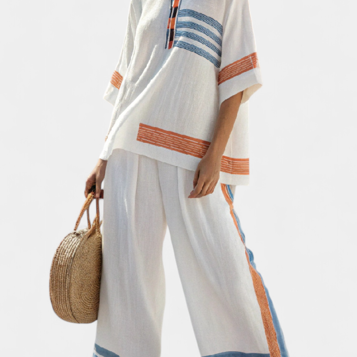 Bílé etnické soupravy Daisy s modrými a oranžovými detaily – jedinečný a živý styl