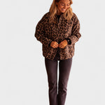 Tento kabát s trendy leopardím potiskem je must-have kousek pro váš šatník. S jeho objemným střihem a hřejivým materiálem nejenže vypadá neuvěřitelně stylově, ale také vás udrží v teple a pohodlí. Jeho univerzální design vám umožní jej kombinovat s čímkoliv, od džínů až po šaty, což z něj dělá ideálního společníka pro každodenní nošení i večerní akce. Kabát má praktické druky, dvě přední kapsy a žebrovaný lem na manžetách, který dodává moderní nádech.