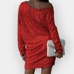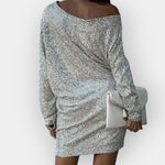 Šaty, které upoutají pozornost – působivé třpytivé flitry v kontrastu vytvářejí oslnivý efekt při každém kroku. Ideální pro zářivé příležitosti a výjimečné okamžiky.