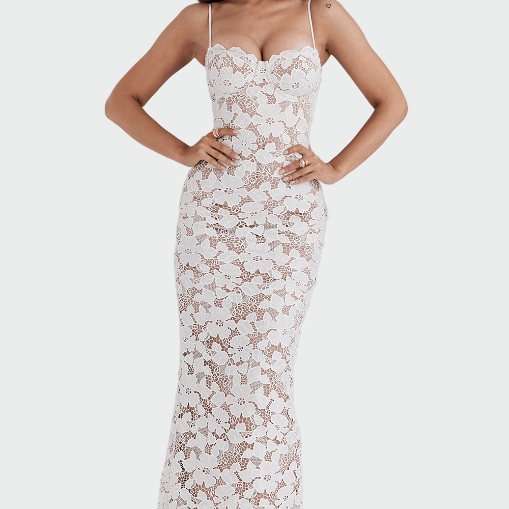 Elegantní gala šaty s otevřenými zády a působivým výstřihem.