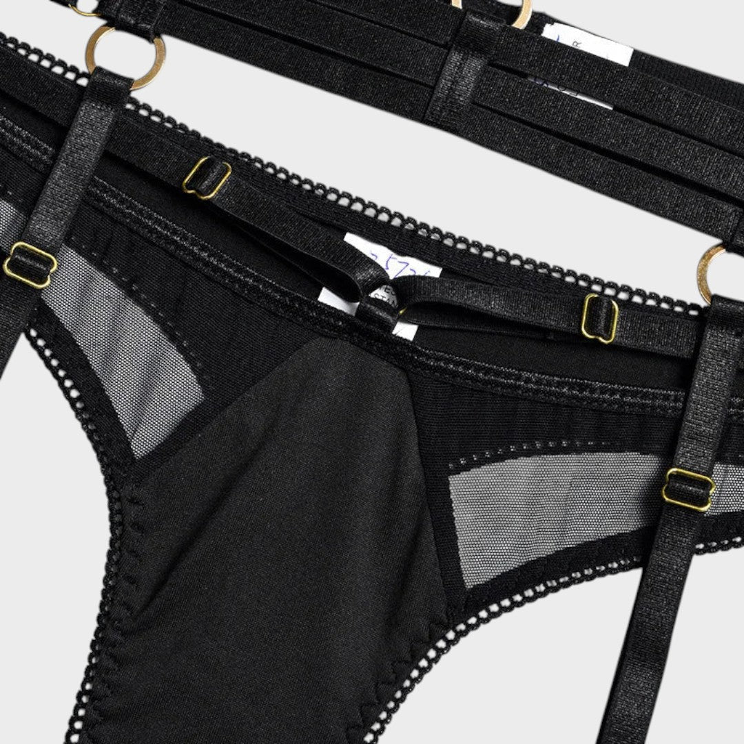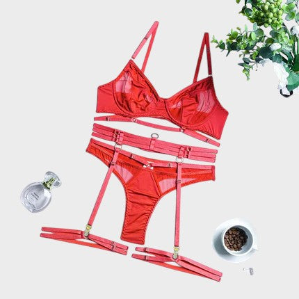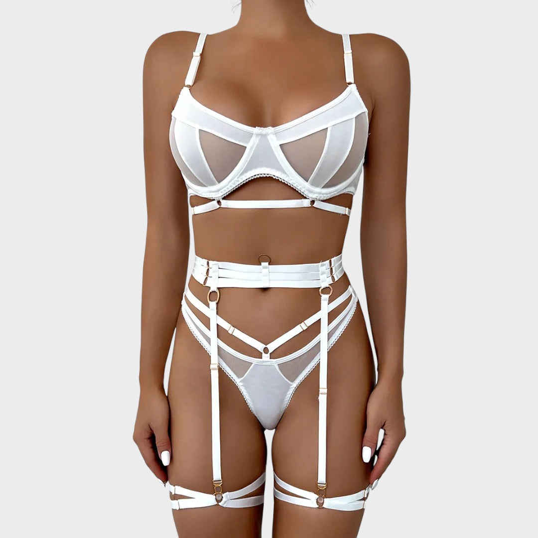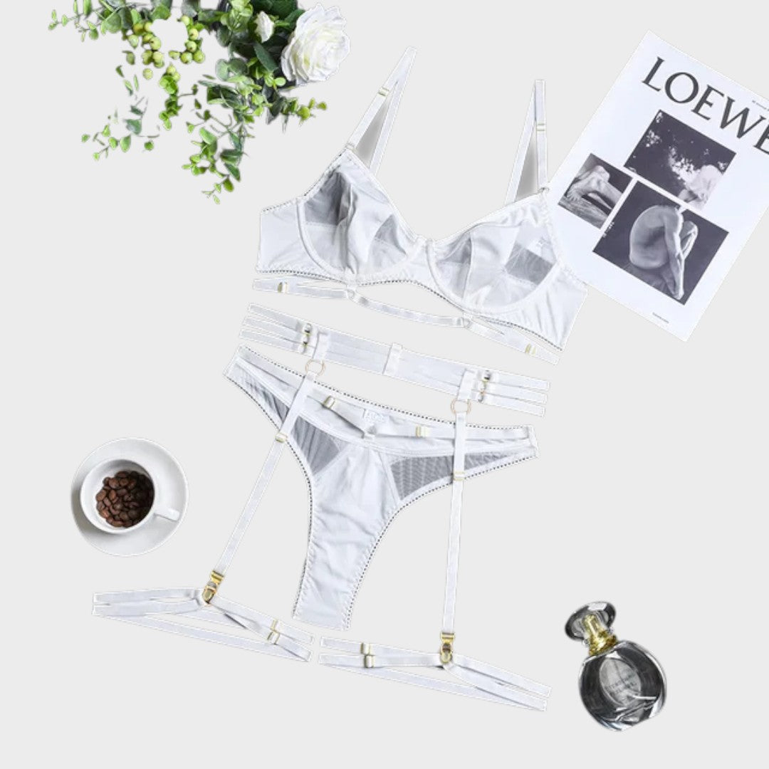 • 3-dílná souprava: podprsenka, kalhotky, podvazkový pás