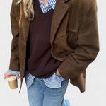 Toto stylové sako přináší dokonalou kombinaci elegance a ležérního pohodlí. Díky svému nadčasovému designu se snadno kombinuje jak s džínami pro uvolněný look, tak s formálnějšími kousky do práce či na schůzky. Je to univerzální kousek, který dodá každému outfitu šmrnc a sebevědomí.