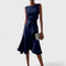 Asymetrický design - Nepravidelná délka sukně a sklady dodávají šatům moderní a inovativní vzhled, což je jedinečnými