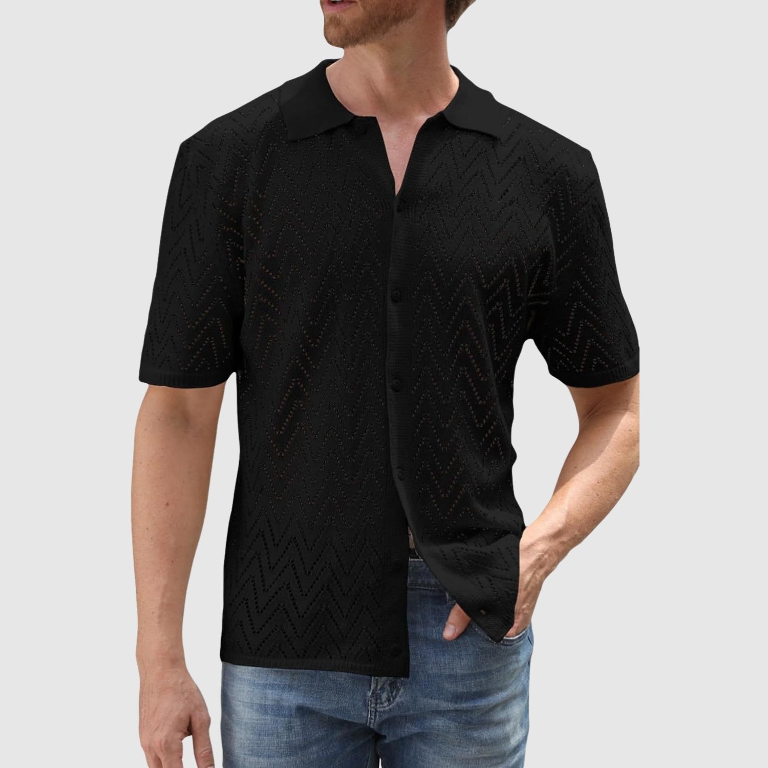Odvažte se nosit oděv, který kombinuje svěžest, texturu a moderní styl. Tato pletená košile se cikcakovým vzorem dodává moderní a sofistikovaný nádech, aniž by se vzdávala pohodlí. Díky lehké a prodyšné tkanině je ideální pro každou neformální příležitost nebo letní událost.