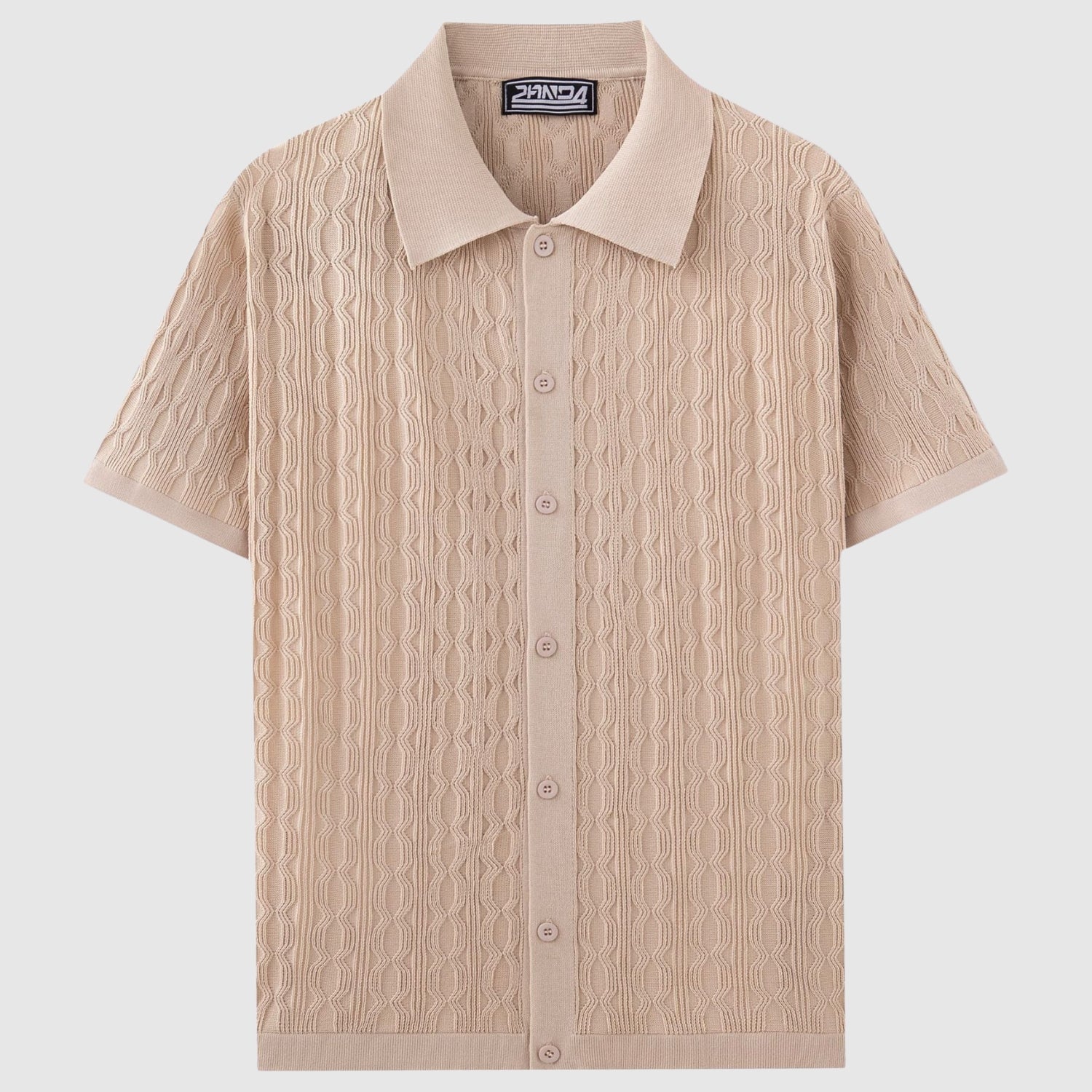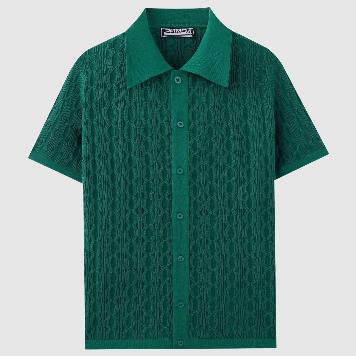 Tato pletená košile kombinuje letní lehkost s designem, který vyzařuje eleganci a styl. Její texturovaná, měkká a pružná tkanina dodává nenucenou střih sofistikovanost, zatímco volný a otevřený límec z ní dělají ideální kousek pro ty, kteří chtějí přirozeně vyniknout.