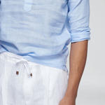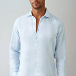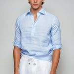 Lněná Pop-over Košile – Světle Modrá je ideální pro formální i neformální příležitosti. Noste ji s lněnými kalhotami pro letní vzhled nebo ji kombinujete s chinos pro elegantní smart-casual vzhled.