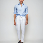 Lněná Pop-over Košile – Světle Modrá kombinuje rafinovanou eleganci s ultimátní pohodlností. Lehké lněné tkaniny zajišťující přirozenou prodyšnost, zatímco subtilní pop-over design dodává stylový, moderní nádech. Perfektní pro muže, kteří chtějí bezstarostný elegantní vzhled bez kompromisů v pohodlí.