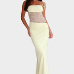 Vyzvedněte svou ženskost a eleganci s těmito dlouhými šaty v jemné pastelově žluté barvě. Kombinace jemné krajky na živůtku s přiléhavou spodní částí vytváří vysoce atraktivní a vytříbený vzhled, ideální pro večerní výlety nebo speciální příležitosti.