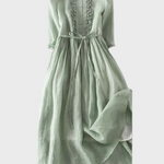 Elegantní dlouhé šaty v jemné zelené barvě vyzařují svěžest a přirozenou eleganci. S lehkým a volným střihem jemně objímají siluetu a zaručují jedinečné pohodlí po celý den.