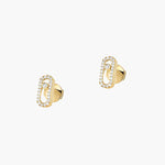 Tyto zlaté náušnice kombinují moderní design s nadčasovým třpytem. Oválný rám, zdobený oslnivými kameny, přidává rafinovanou brilanci, která je ideální jak pro každodenní nošení, tak pro zvláštní příležitosti.
