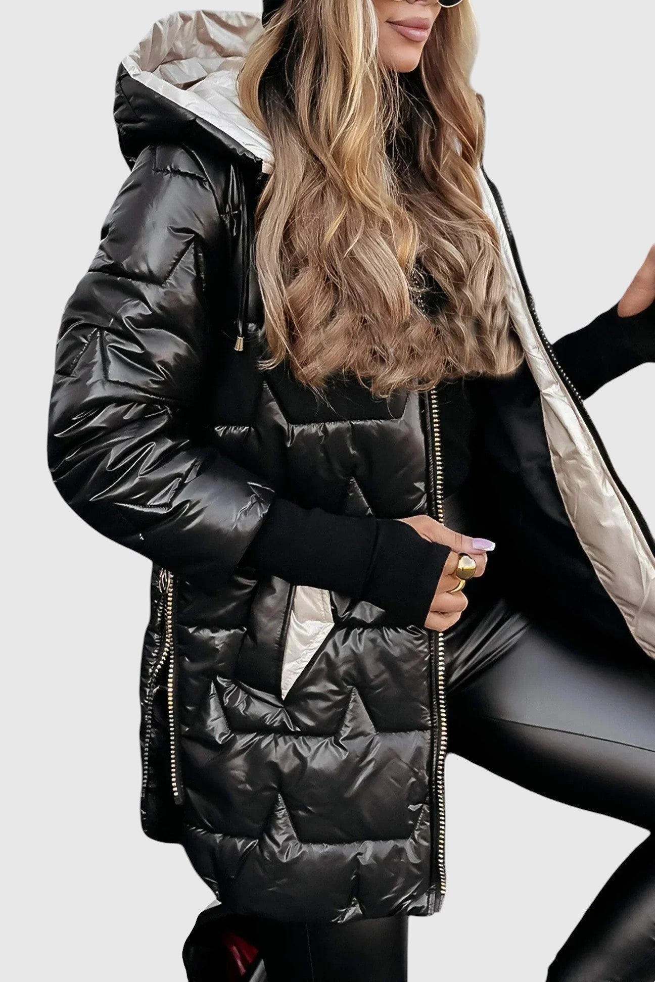 Kabát Nolwen je navržen pro ty, kteří chtějí čelit podzimu s teplem a elegancí. Měkká směs bavlny poskytuje příjemný pocit na pokožce, zatímco podšívka s výplní a kapuce chrání před větrem a deštěm. Spolehlivý oblíbenec pro měnící se počasí, který nabízí praktičnost bez kompromisů ve stylu.