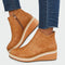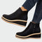 Dámské **kožené boty s platformou** v černé barvě, které kombinují eleganci a pohodlí. Jejich minimalistický design s **bočním zipem** zajišťuje snadné obutí, zatímco **stabilní klín podrážka** dodává výšku, aniž by neunavila. Ideální pro každodenní i večerní příležitosti s moderním městským charakterem.
