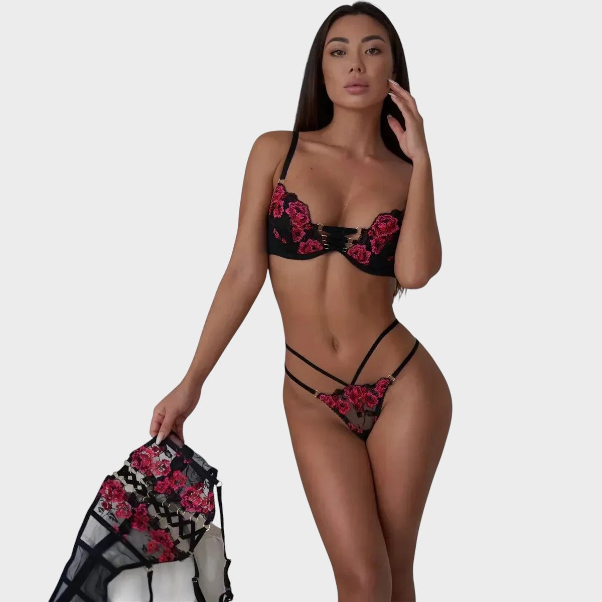Vyberte si Sara | 3-dílnou soupravu spodního prádla, abyste v každé situaci vyzařovali nádech elegance a svůdnosti. Toto sexy spodní prádlo vás nejen nadchne, ale také posune vaši intimní garderobu na další úroveň.