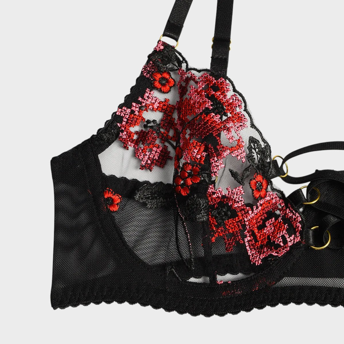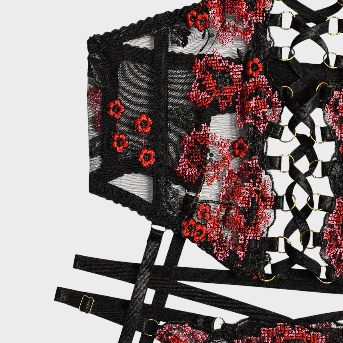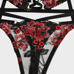 Odpovídající kalhotky jsou vyrobeny ze stejného elegantního krajkového a síťovaného materiálu a nabízejí lichotivý střih, který zdůrazňuje vaše křivky. S minimálním zakrytím podtrhuje svůdný celkový dojem soupravy, což z ní činí ideální svůdné prádlo pro ženy.