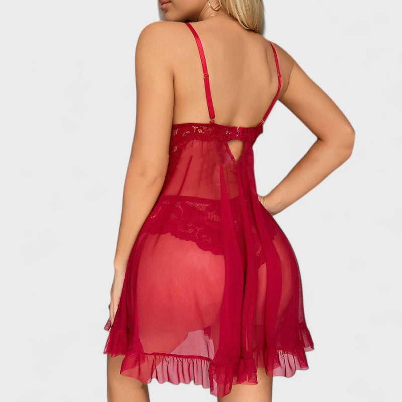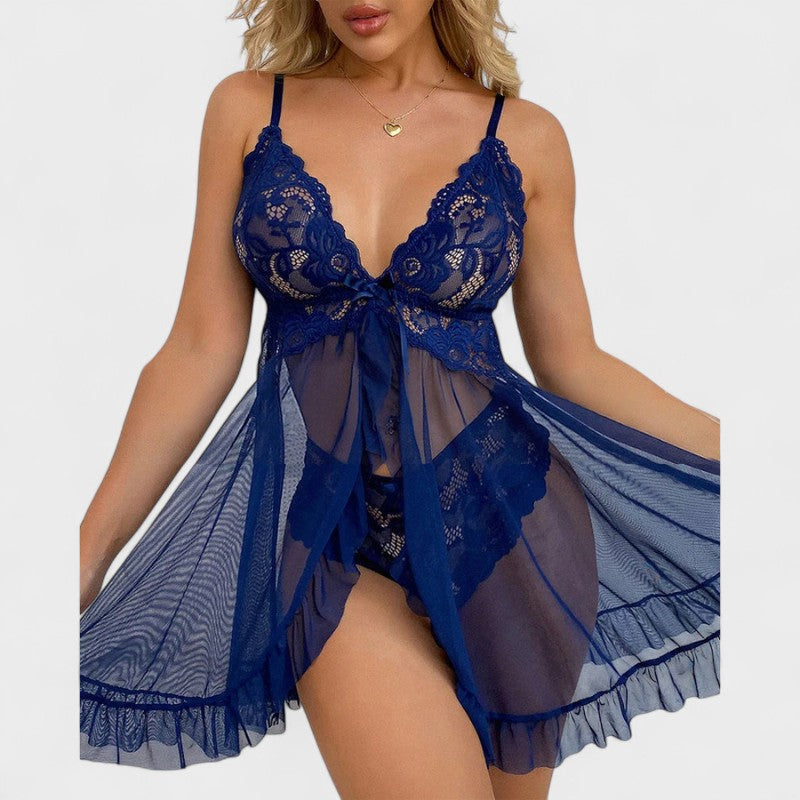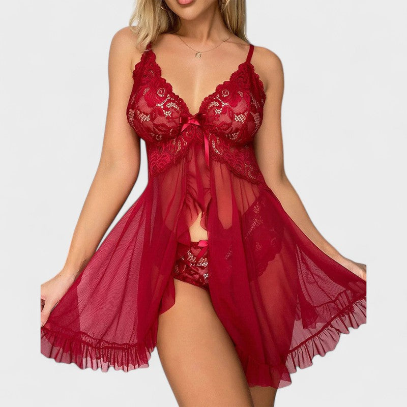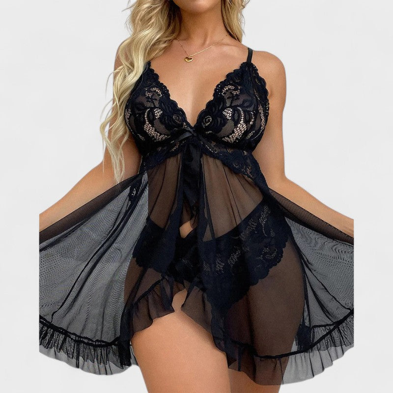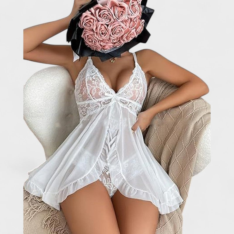 Elegantní krajková košilka s volánky a kalhotkami